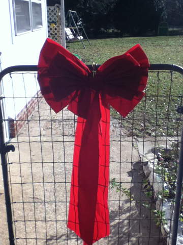 The boy and I went on another adventure last night. Once again we fought our way through a backyard filled with scary monsters (re: trees). This time though, we came across a new nemesis, the red bow.