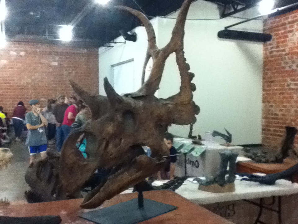 The World of Wonders building was divided in half. Tables surrounded the two spaces, filled with replica dinosaur fossils.
