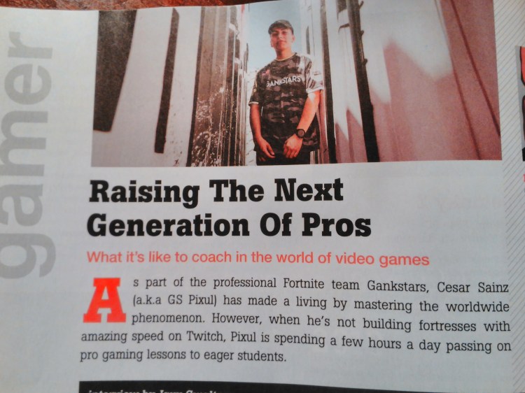 This month, Game Informer interviewed a professional Fortnite player, Cesar Sainz, who moonlights as a pro gaming coach. Imagine inviting a stranger, into your home via the Internet, and allowing them to coach your kid to be a better Fortnite player. Check out this quote from the piece: